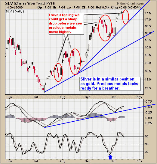 The Silver ETF looks to be in the same boat as gold. I expect to see some sideways price action or a pullback.