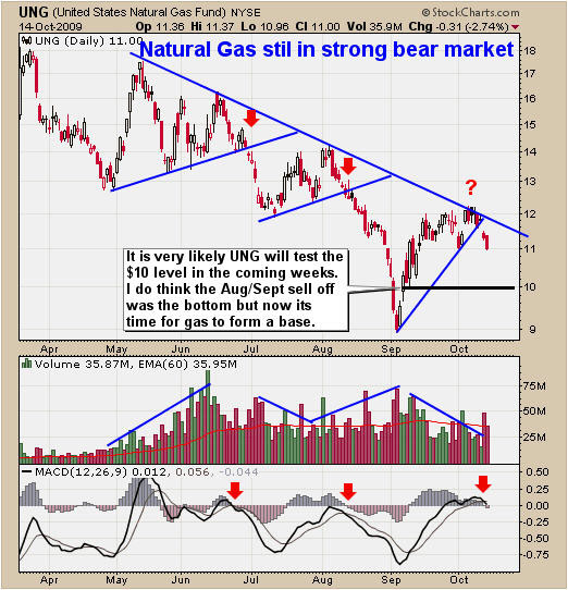 The Natural Gas ETF sure has given everyone a wild ride in the past 6 months. The bear market is still in place which can be seen on the daily chart. So far this week the price has broken down and trading at the $11 support level. This fund could generate a buy or sell signal with my trading model in the coming days so I am waiting for a clear entry and exit point before jumping on the gas wagon.