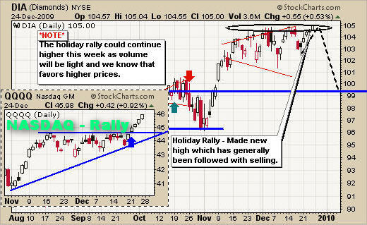 Last week the market fell into its regular holiday tradition of light volume, as institutions and big traders enjoyed the holidays thus allowing prices to drift higher. We still have one more week of light trading volume before this year and holiday season is officially over.