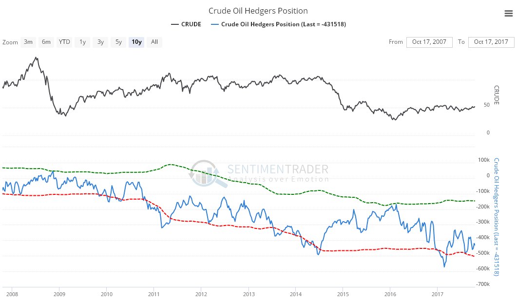 The Crude Oil Hedgers chart shown below is quite bearish, although not at wild extremes.