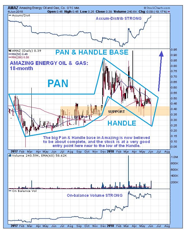 Amazing Energy Oil & Gas Co, AMAZ on OTC, closed at $0.39 on 4th June 18.