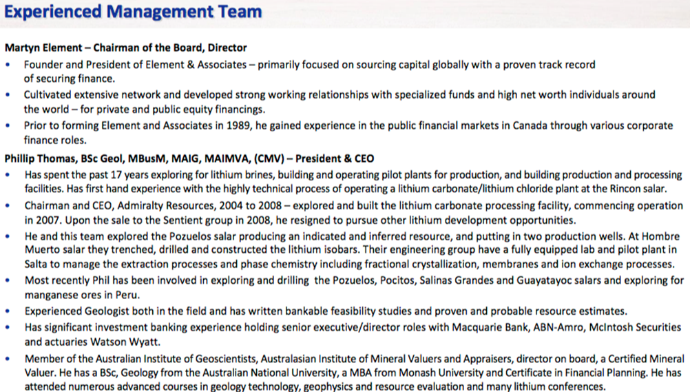 Management gave me an example of a 20,000 tonne per year lithium carbonate plant that could reduce its cap-ex from $560 million to $210 million by using this new technology. With no evaporation ponds, the process can easily be turned on and off, and there's no ground water issues.