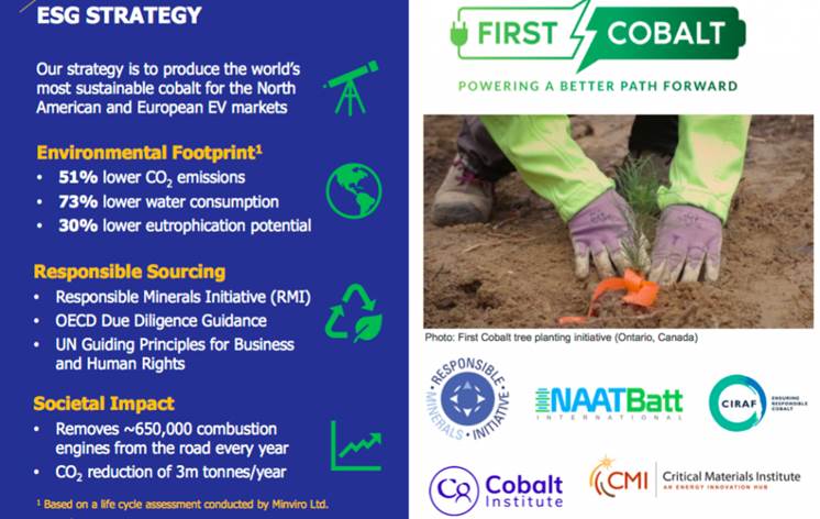 First Cobalt is graduating from a pure-play Cobalt junior to a battery metals producer (cobalt in 2H 2022, plus recycled metals thereafter).