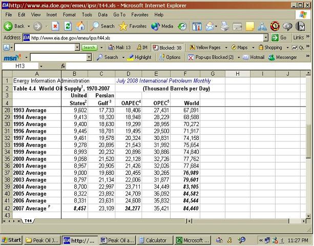 But that is not the issue. The problems start when daily production cannot meet daily demand. Check the chart. Note carefully that world production has not increased significantly since 2004 and has been shrinking since 2005.