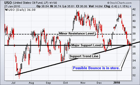 USO looks to be trading at support. I am inclined to patiently wait another session before possibly taking a position.