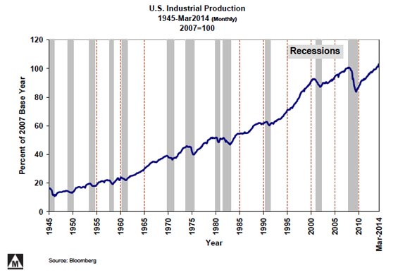 Most recessions are inventory and capital expenditure recessions. Industrial production always cuts back. These factors are common to all recessions, though each recession had certain characteristics that have allowed us to do pretty well in the investing market place for 30 years. Each looks just different enough that people can say it's different this time. But the underlying pattern looks pretty much the same.