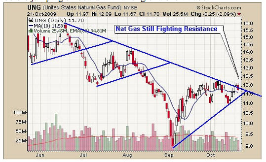Natural gas is still in a bear market and trading under a major resistance trend line. This commodity could go either way so I am going to wait for the odds to be more on my side before jumping on board with a long or a short trade.