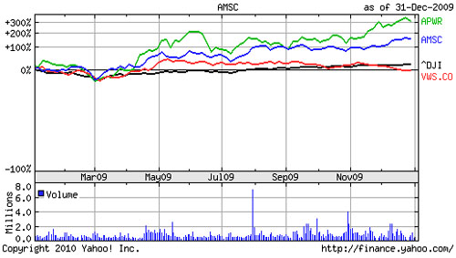 American Superconductor (NASDAQ: AMSC) has exclusive contracts with Sinovel, the largest turbine producer in China and fifth-largest in the world. Shenyang-based A-Power Generation Systems (NASDAQ: APWR) enjoyed a 300% year, and even earned a turbine contract for a farm based in Texas.