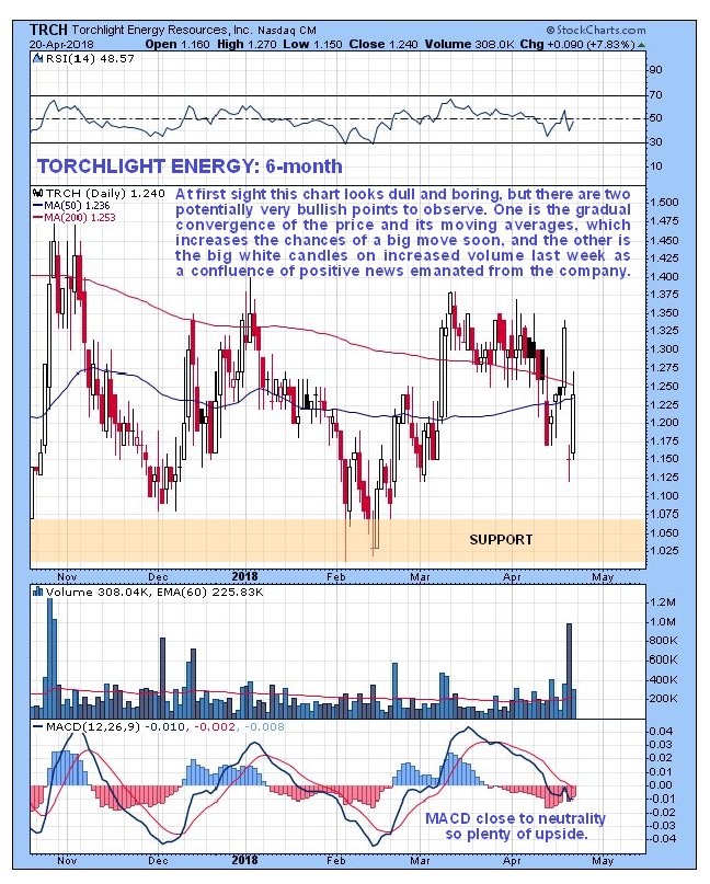 Torchlight Energy Resources Inc., TRCH on NASDAQ CM, closed at $1.24 on 20th April 2018.