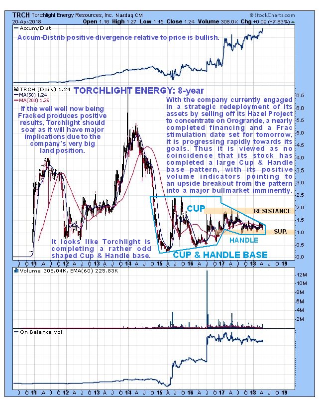Torchlight Energy Resources Inc. (TRCH:NASDAQ) has been a boring and frustrating investment for shareholders up to now, and the reason for this is that it has been "spread rather thin" trying to develop two major and distinct projects at once, and a continuation of this situation would either result in going into debt or in stock dilution, and it is this threat that has restrained its stock up to now. We have dabbled with Torchlight at times over the past several years, but never really got very far with it and last went for it in early March when it was at a reasonably good entry point.