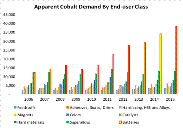Unlike lithium, graphite and nickel, the major end use of cobalt is already denominated by the LIB market. The other major use is alloys and if you lump together the similar items here such as hardfacing, super alloys and hard materials, it gets close to the LIB demand.