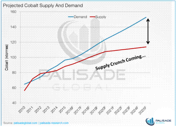 The LIB demand started to heavily influence the cobalt price in early 2017 and it shows no signs of abating yet. It will be difficult to bring new supply on stream because it has to come as a byproduct of nickel or copper. The heavy reliance on the DRC, where China gets a lot of its supply, is very precarious. This graphic comes from a cobalt report by Palisade Research and although it is from 2016, nothing has really changed on this front and is still very relevant.