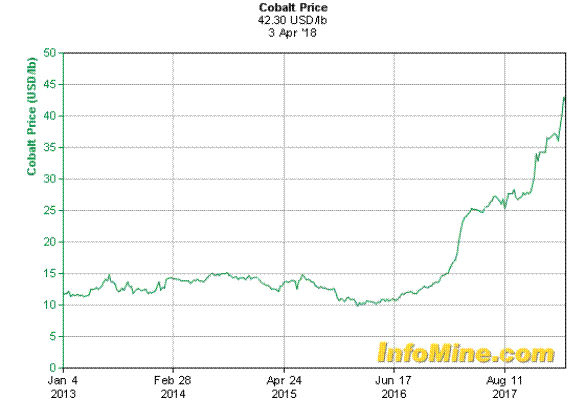 A key element in lithium-ion batteries (LIBs) is cobalt. I have focused a lot on graphite and lithium, but cobalt is unique in its own regard and probably has more bullish factors than graphite, lithium and nickel. There are two major factors that differ cobalt from the other LIB metals. Most of the world's cobalt is currently sourced from an unstable political source, namely Democratic Republic of the Congo (DRC). Wars continue to rage there and currently, The Guardian writes that 13 million Congolese need humanitarian aid. No doubt it is one of the worse places on earth today, very sad. The other factor is cobalt is only mined as a byproduct of other mines, with 98% as a byproduct of nickel and copper mines. Only Moroccan and some Canadian arsenide ores extract cobalt only.