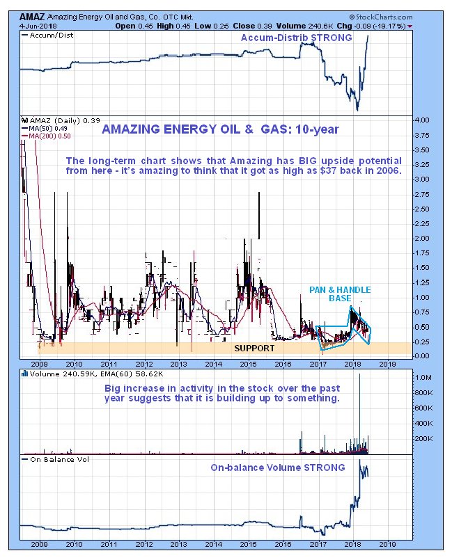 Amazing Energy Oil & Gas Co, AMAZ on OTC, closed at $0.39 on 4th June 18.