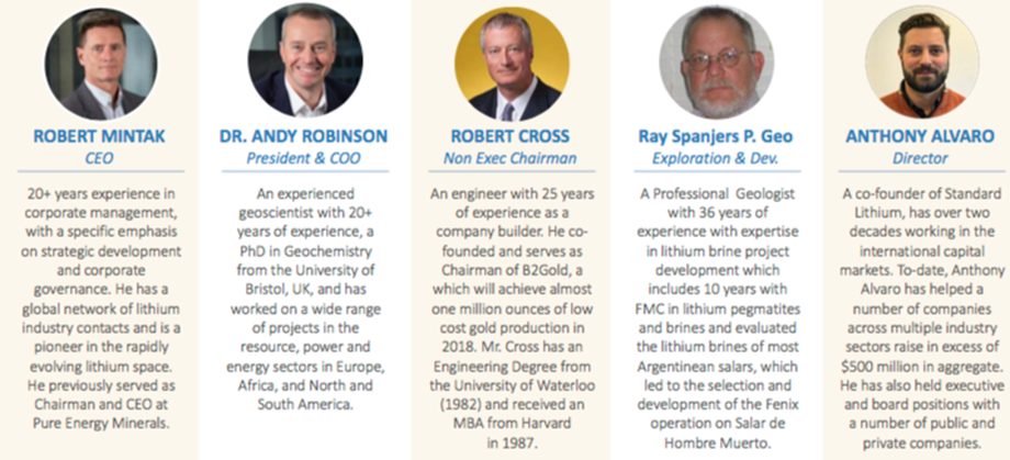 Myself, I have been involved in the lithium sector for the better part of the past decade. My experience and successes in the lithium sector have been in forging strategic relationships and partnerships with large multinational companies and stakeholders. Previous to Standard Lithium, at Pure Energy I brought POSCO, Tenova Bateman, SRI and Tesla to the table; at Standard Lithium we have continued that dynamic with the agreements and partnerships executed including NYSE listed Tetra Technologies and, of course, our announced planned JV with LANXESS.