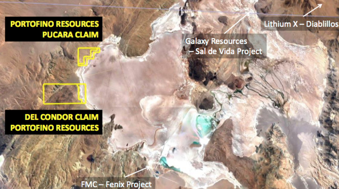 Portofino Resources' flagship project is the key to this story. The company has the right to acquire a 100% interest in the Hombre Muerto West lithium brine project located on the west side of the Salar del Hombre Muerto in Catamarca province, Argentina. The project is comprised of two claim blocks, Del Condor and Pucara, totaling 1,804 hectares. Before Portofino got involved, there was no historical exploration on either claim. Hombre Muerto West is within the world-class Salar del Hombre Muerto, where FMC Lithium Corp. (FMC:NYSE) is producing lithium carbonate and Galaxy Resources Ltd. (GXY:ASX; GALXF:OTCMKTS) is developing the high-grade Sal de Vida project.