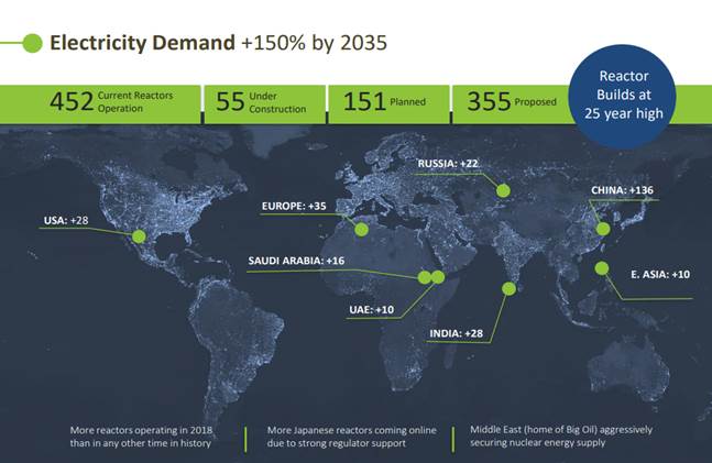 Ross McElroy: Well, it's fairly simple to understand what the demand for nuclear energy is, in other words, uranium. We can just multiply the number of reactors around the world that are currently operating, and the known fuel consumption rate for a 1000 megawatt reactor is just under 500,000 pounds of uranium a year. If we look at the global reactors, there are around 450 reactors around the world. You can see that the need for uranium on an annual basis is around the realm of almost 200 million pounds of uranium.