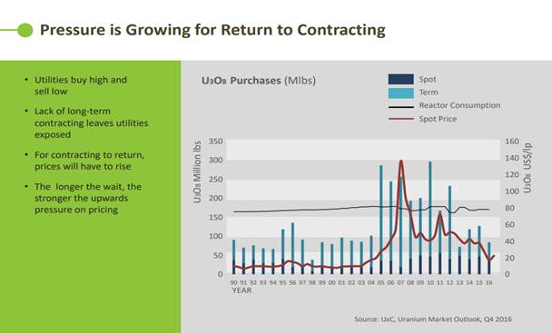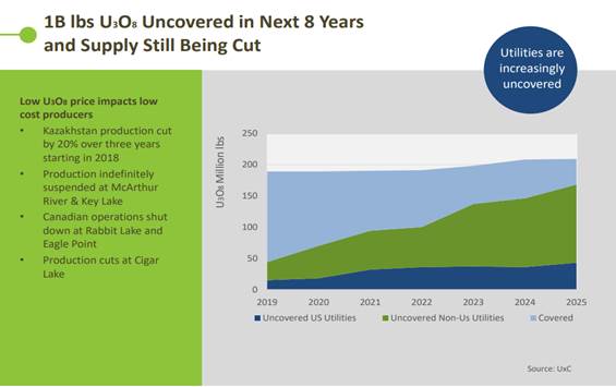 What we've seen is that the supply is starting to be restricted as the producers are taking a lot of that uranium off market; they're not supplying it to the utilities at this cheap price, because it's not a working business model to lose money in the long run on the mining of the commodity.