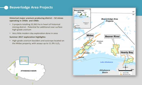 And probably third for us is the land package that's up in the northwest side of the basin, in the old uranium city Beaverlodge district where uranium mining in Saskatchewan first got started back in the 1950s and was the going concern back in the '50s and the '60s, I think there were about 52 operating mines up in that area, pretty small scale most of them, but still lots of high-grade uranium. That's an area where we think that there's still plenty of exploration potential.