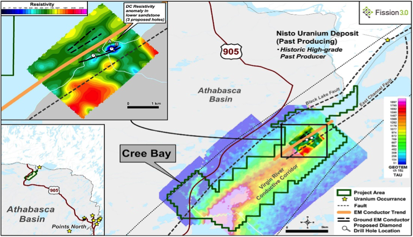 Maurice Jackson: Ross, take us to the northeast portion of the Athabasca Basin to the Cree Bay property, which is only one of 18 projects in the Fission 3.0 property bank. Your team just started a drill program there. Within the Cree Bay property, where are your target areas?