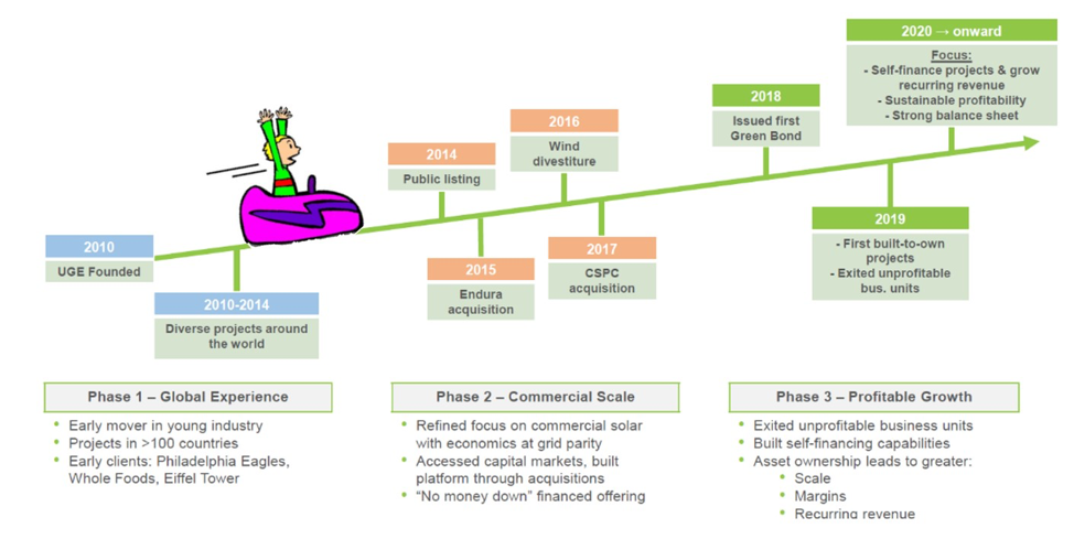 Figure 1: UGE has successfully navigated various renewable sector challenges since its founding a decade ago. Source: Company reports.