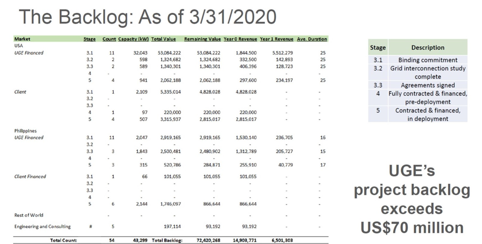 Figure 3: Unlocking value in the backlog could be a very significant catalyst for UGE's stock. Source: Company reports.
