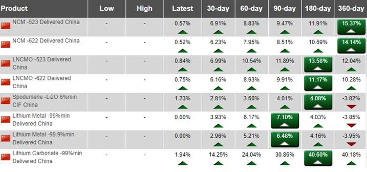 I usually use three sources to determine the current state of affairs with lithium product pricing. These are: