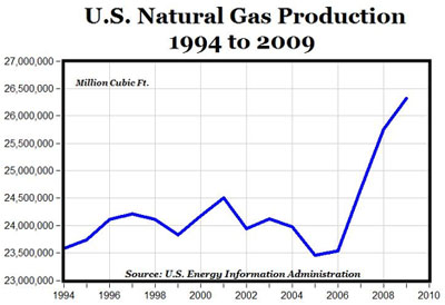 This surge in domestic natural gas production over the last three years has enabled the United States to overtake Russia as the world's No. 1 producer of natural gas, and is all due to advanced drilling methods now being used to drill for gas through a type of rock known as shale. Read more here.