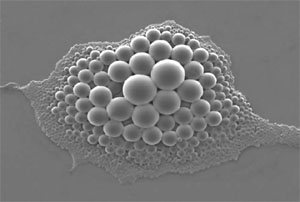 To safeguard against this type of failure, White developed a second kind of microsphere made of solid polyethylene—an inexpensive and widely available plastic. A small quantity of these spheres embedded in the anode and other battery components can function as a safety cutoff switch.